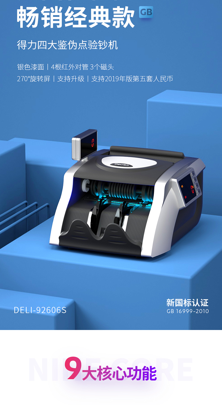 得力(deli)2019年新版人民币点钞机验钞机升级款 银行专用 双屏语音商用家用国标C级点钞机数钱机